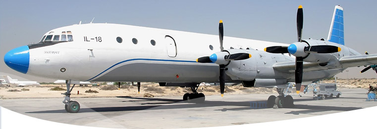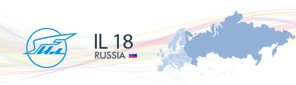 The Il-18 is a passenger aircraft equipped with four turboprop engines. The aircraft was mass manufactured for twelve years. The popularity of the aircraft was ensured, not just because of its reliability and operational economy, but because of the possibility to increase the number of passenger seats and its flight range for every modification (A, B, V, D and E) as well. The Il-18 was also produced in VIP version ("Salon").